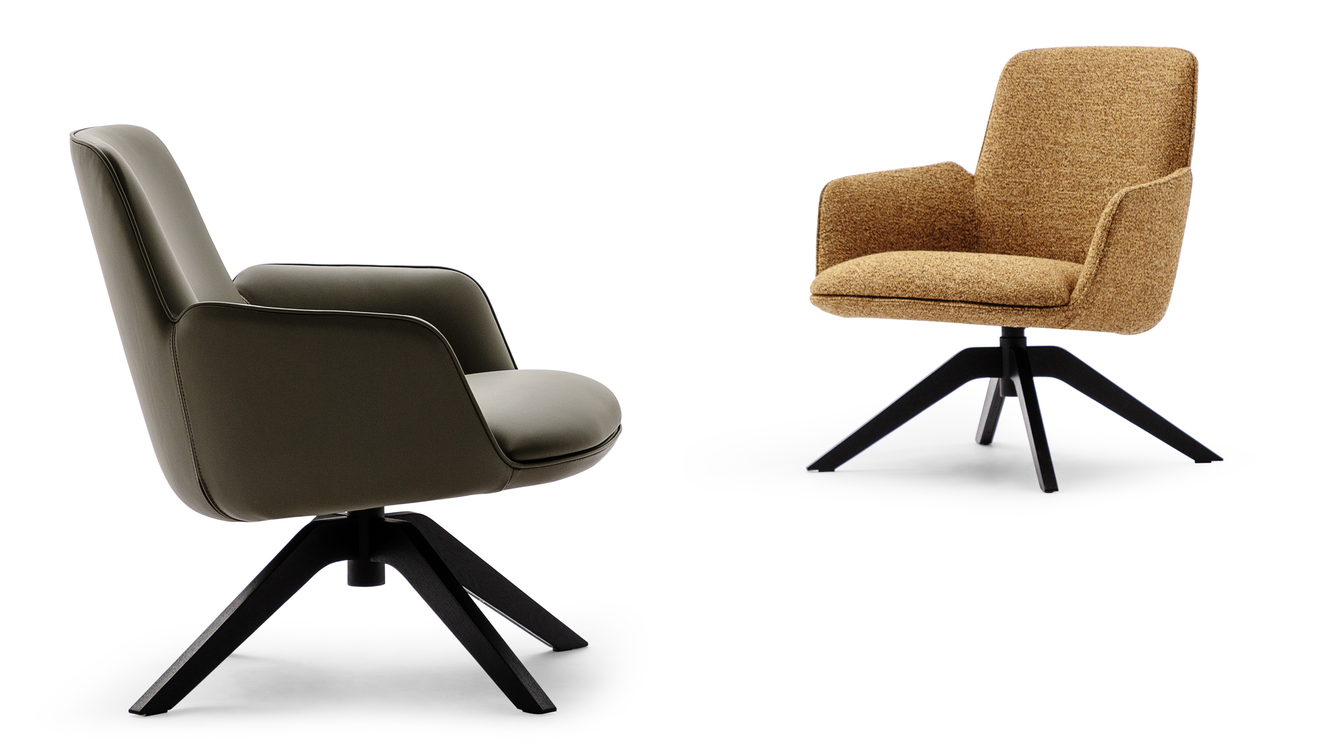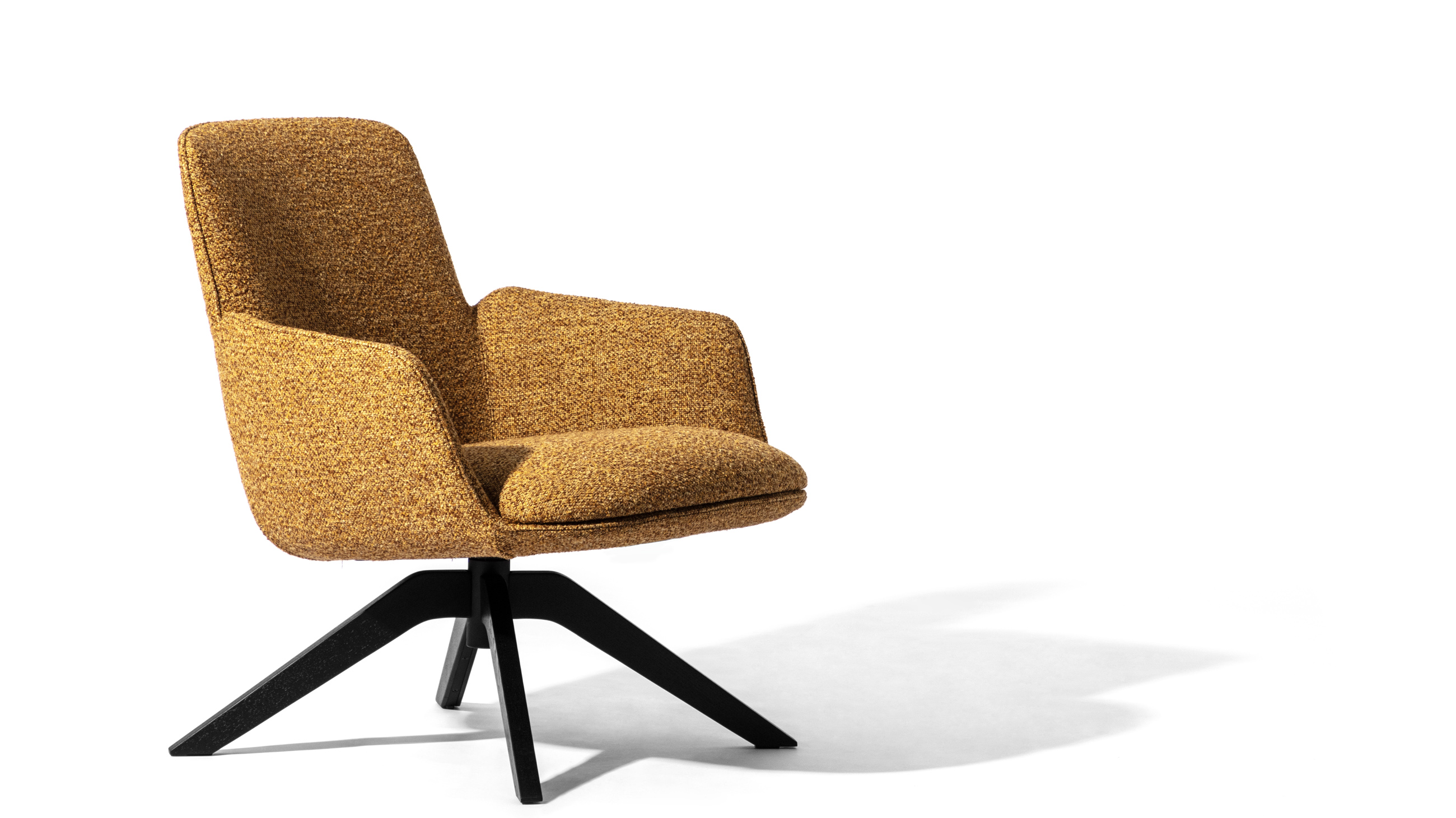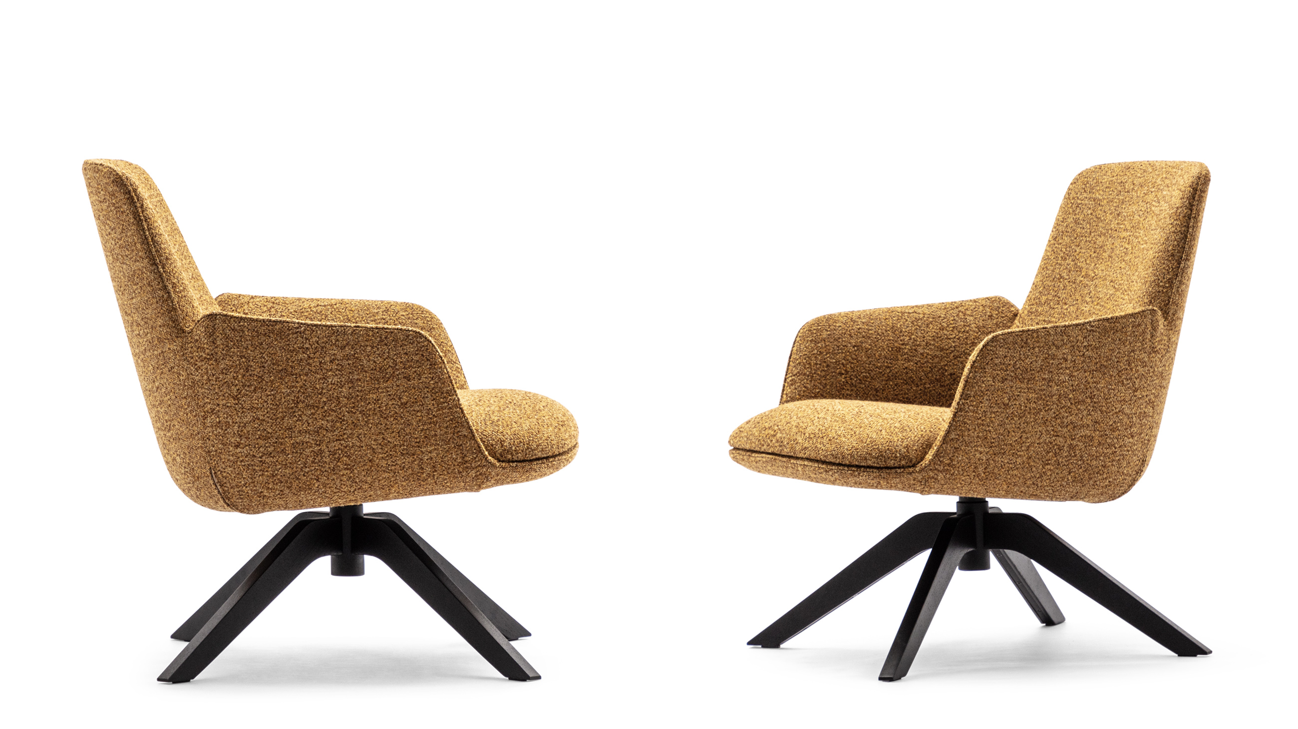 整体形态干练而优雅,兼具美感与辨识度。3D曲面造型椅背,与扶手连贯形成起伏曲线,环抱式承托背部。牙线强调轮廓曲线,勾勒产品质感。旋转腿提升愉悦体验。