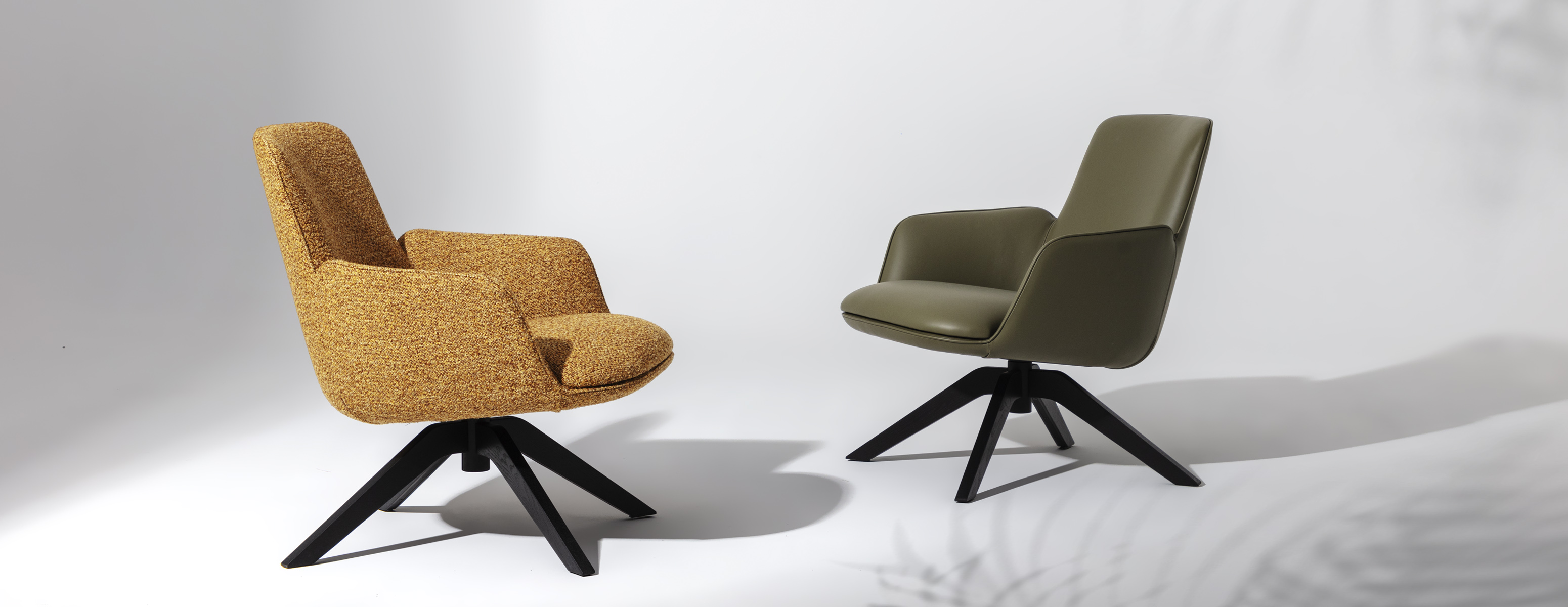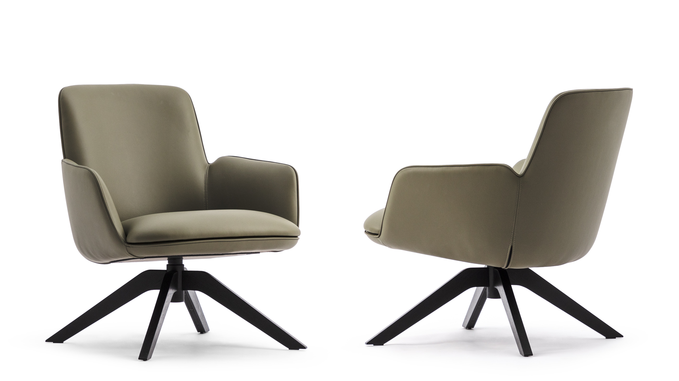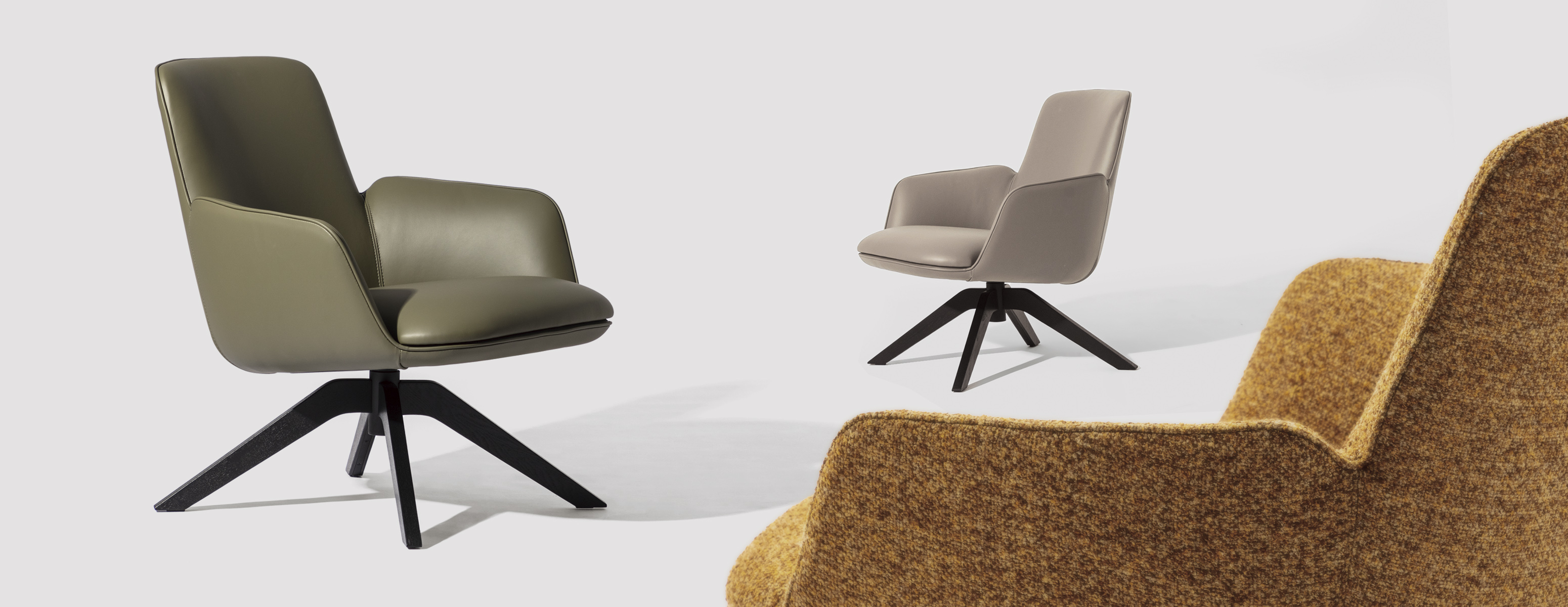 整体形态干练而优雅,兼具美感与辨识度。3D曲面造型椅背,与扶手连贯形成起伏曲线,环抱式承托背部。牙线强调轮廓曲线,勾勒产品质感。旋转腿提升愉悦体验。